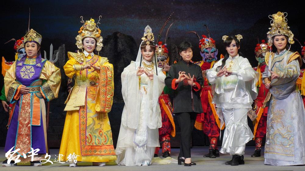 明華團在台南開演「鯤鯓平卷」時,除了在廟外演戲,也特地將神明請到演藝廳觀賞,感謝神明一路保佑,全團演出順利。